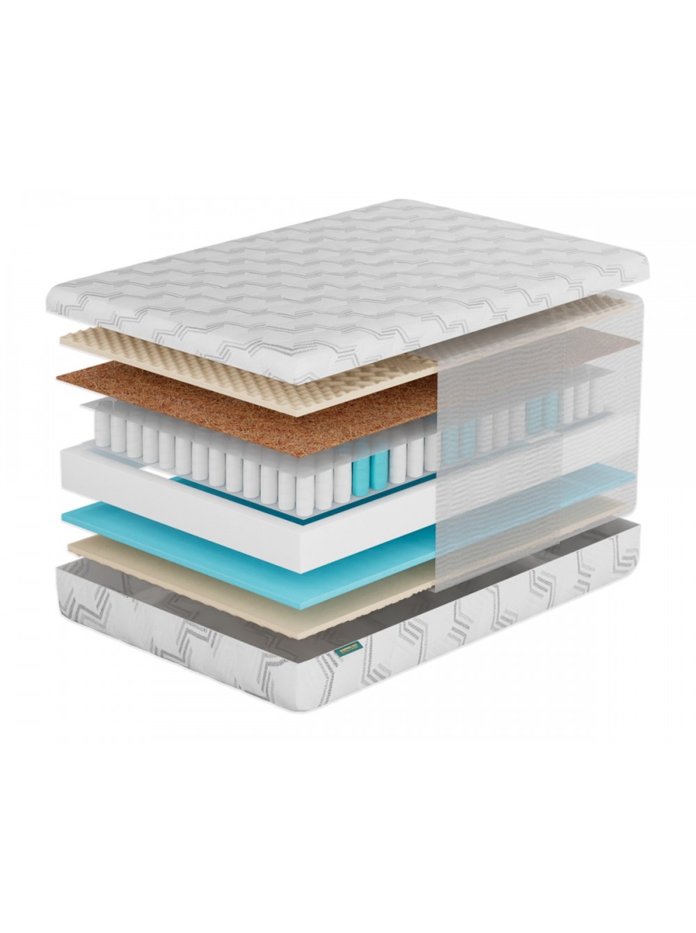 6. Пружинный блок Pocket Spring- 7 зон 14см шахматной сборки - более совершенный тип пружинного блока, каждая из пружин которого находится в отдельном чехле из нетканого полотна. Пружины работают независимо, что позволяет оптимально (точечно) распределять нагрузку тела, усиливая ортопедический эффект. Матрас обладает свойством идеально повторять контуры тела, что делает его максимально анатомическим. Благодаря точечной эластичности матраса у него отсутствует «эффект волны». Двуспальные модели такого матраса особенно подойдут для сна людям с большой разницей в весе.