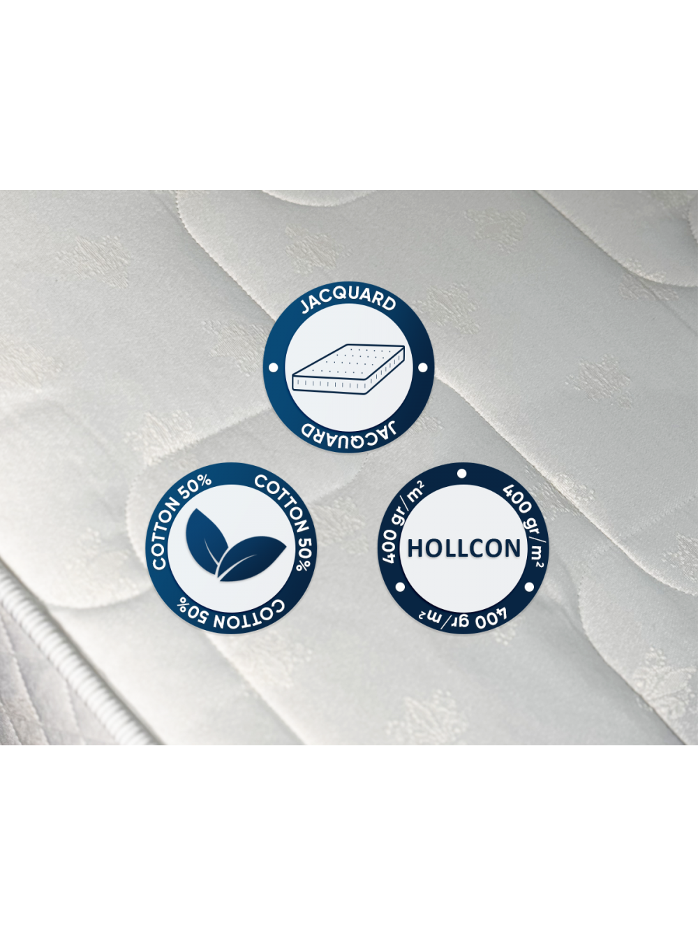 Чехол выполнен из прочной, износостойкой ткани жаккард люкс, простеганной на объемном холконе в сочетании с пеной Memori Foam. Благодаря чему в матрасе создается дополнительный анатомический слой, продлевается срок эксплуатации, изделие приобретает неповторимый внешний вид. 3D сетка по периметру матраса обеспечивает хорошую вентилируемость и сохраняет оптимальный микроклимат во время сна.