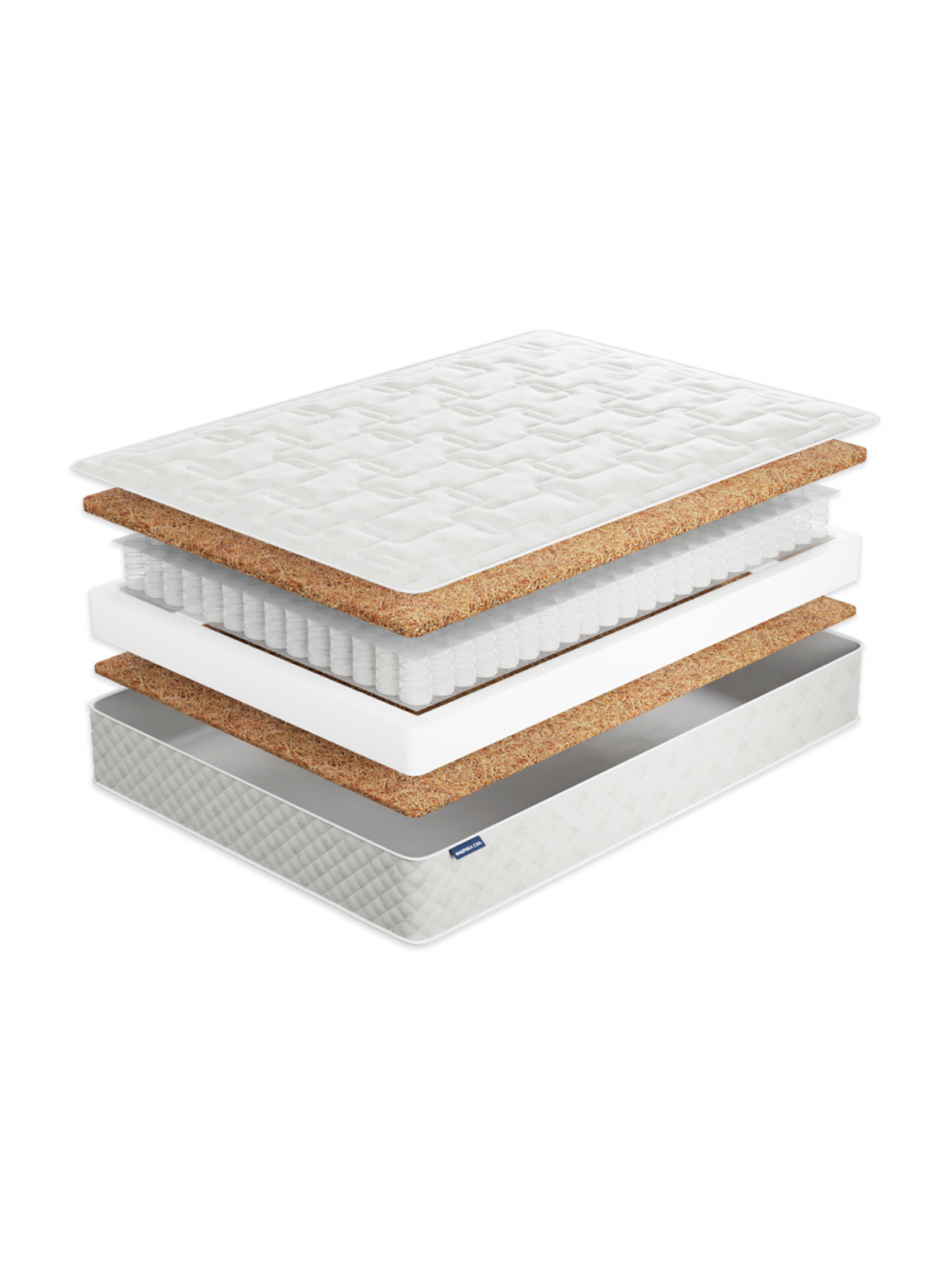 7. Кокосовая койра "КО-SI" (Словения) (2 см)  - 100% натуральный материал с уникальными свойствами. Койра, скрепленная натуральным латексом, дает объемную упругую воздухопроницаемую структуру. Такой материал используется в моделях, предназначенных для любителей более жесткого и упругого спального места. Естественные вентиляционные качества, эластичность, прочность, упругость, гигиеничность и антиаллергенность, наряду с очень долгим сроком службы, делают этот материал идеальным для наполнения матраса.